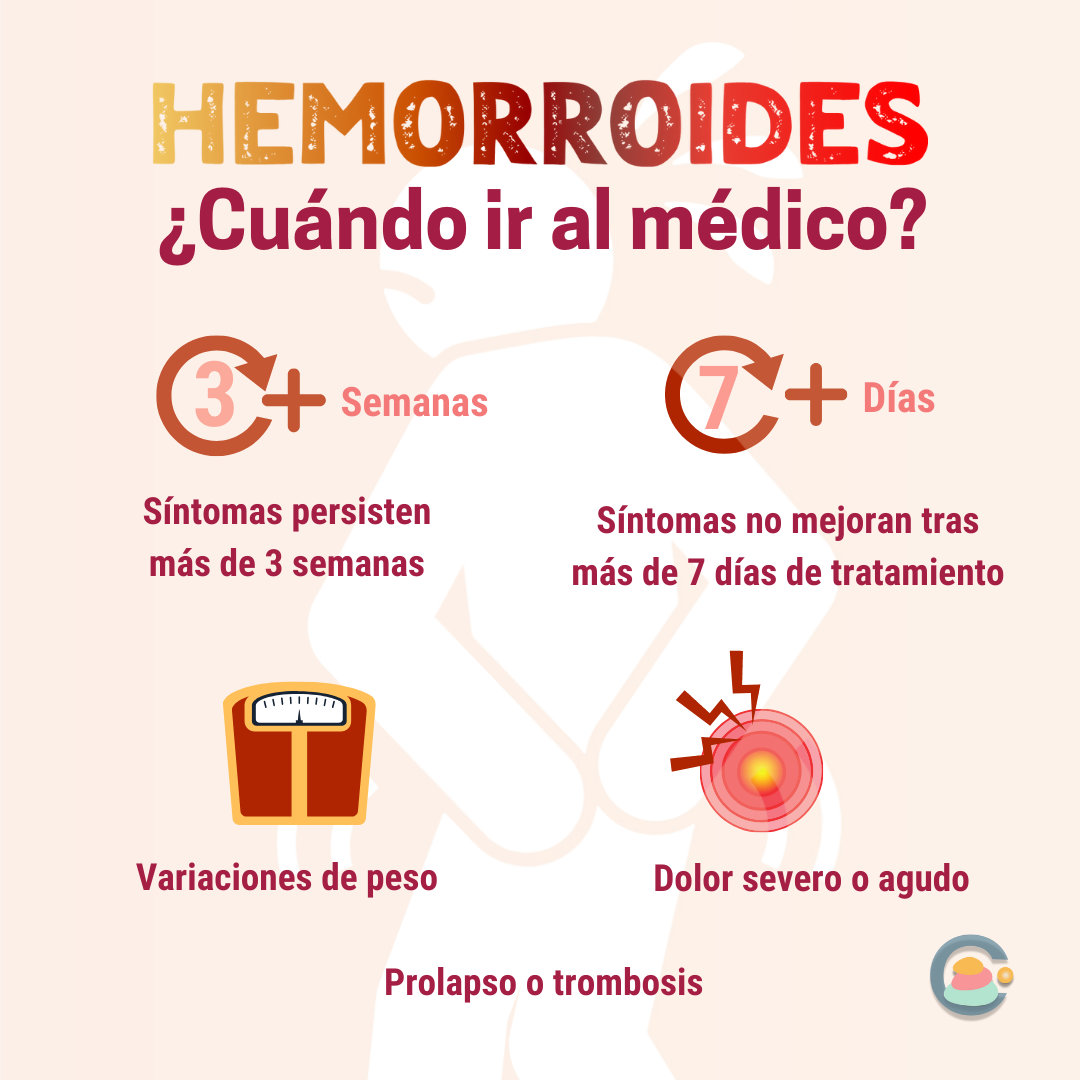 Los síntomas varían según el tipo de hemorroide y pueden incluir sangrado, indoloro, irritación, picor, dolor, molestias alrededor del ano o la aparición de un bulto. No ignores estos síntomas, ya que pueden indicar otras condiciones de salud.